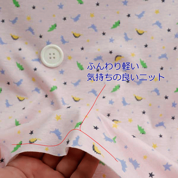 29日ポイント10倍 ニット生地 かわいい 恐竜 プリント ラフィー天竺ピンク カラフル 150cm 幅 50cm単位 はかり売り 布 tシャツ